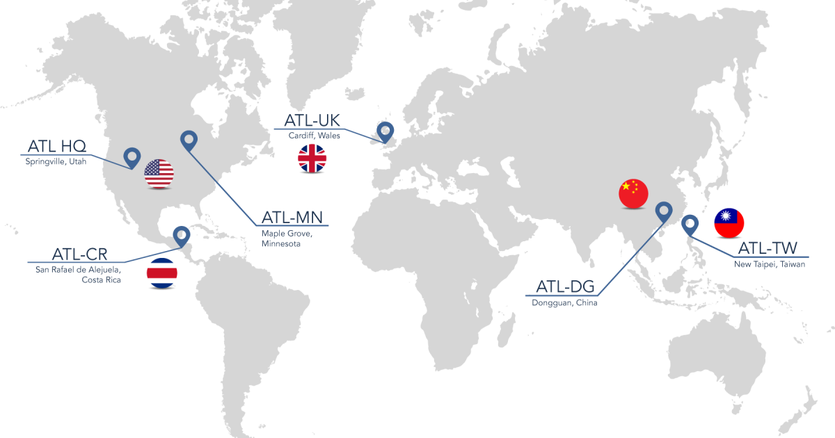 ATL Technology is a worldwide medical device manufacturing company with six locations in the USA (Springville, Utah and Maple Grove, Minnesota), Costa Rica, the UK, China, and Taiwan. ATL Technology is a worldwide medical device manufacturing company with six locations in the USA (Springville, Utah and Maple Grove, Minnesota), Costa Rica, the UK, China, and Taiwan.